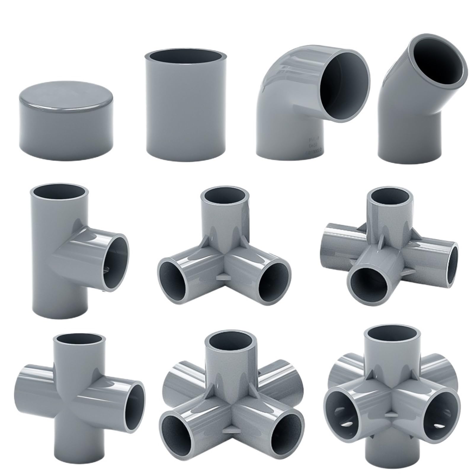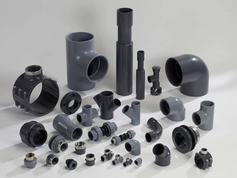 Codos, tees, válvulas y uniones de PVC